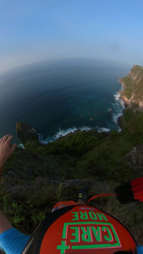 Descendre la falaise vers la droite jusqu’à trouver une zone d’exit évidente.